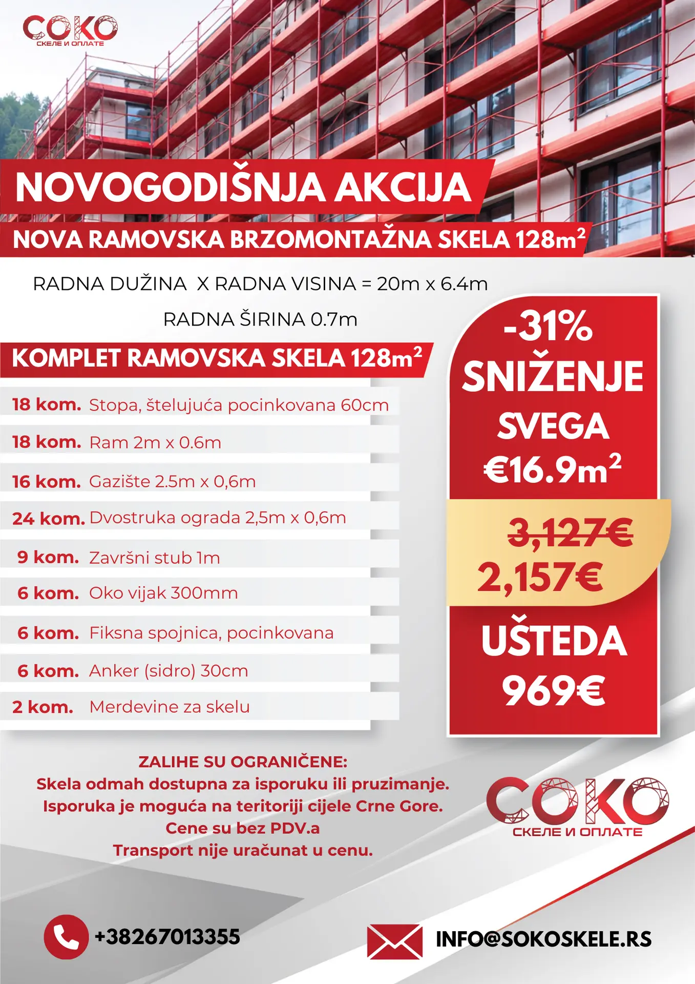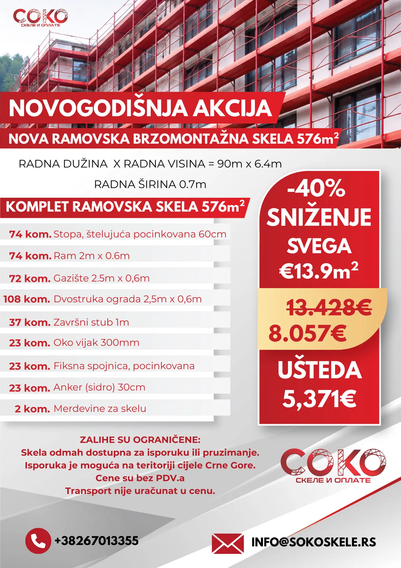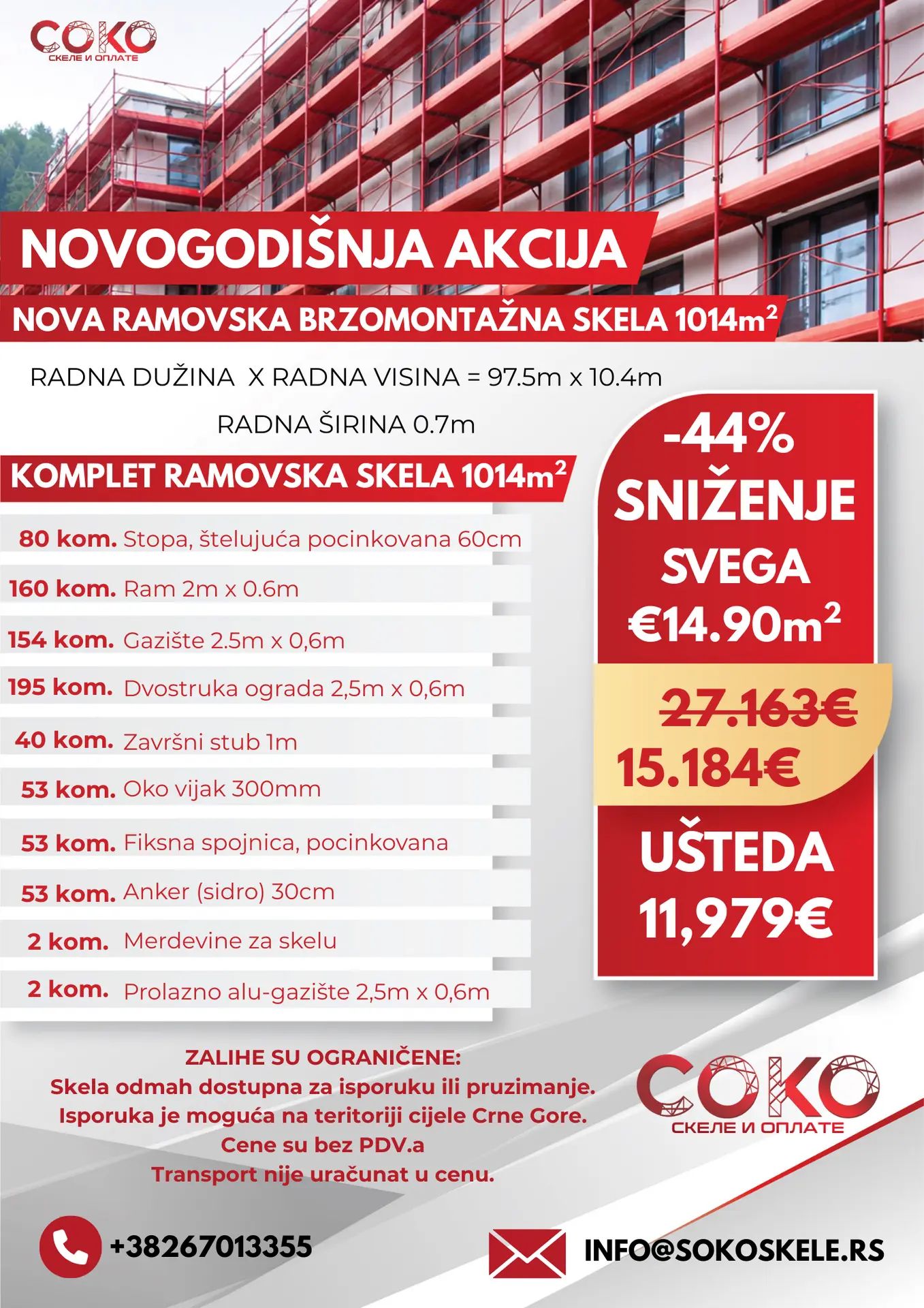 Велика новогодишња акција продаје рамовских брзомонтажних скела и подупирача! Понуда важи до истека залиха!